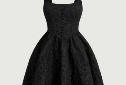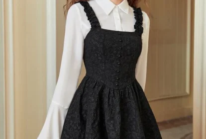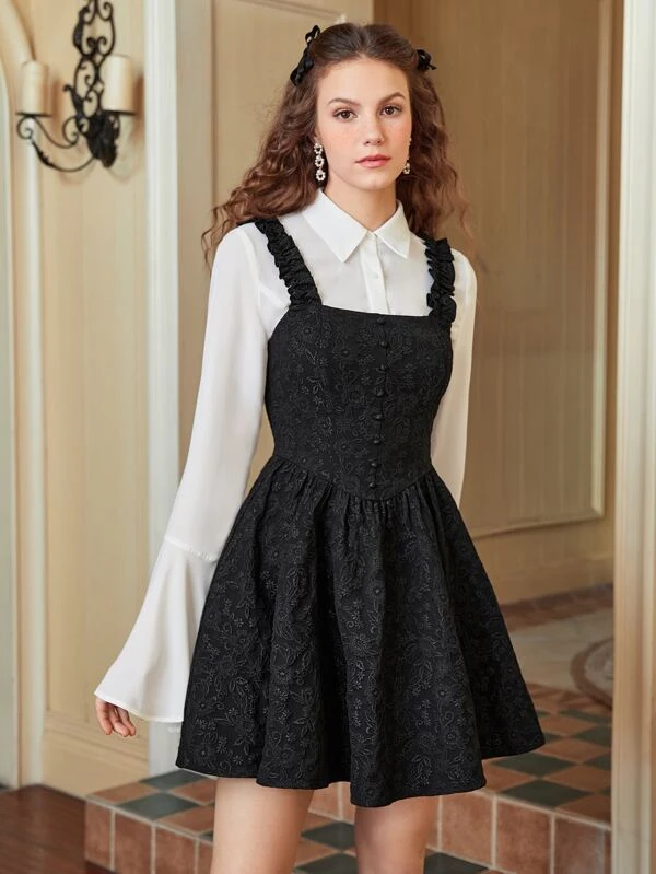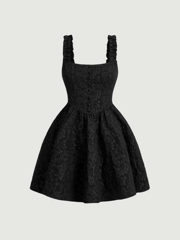 Đặt mua Đầm viền lá sen Nút phía trước màu trơn Thanh lịch