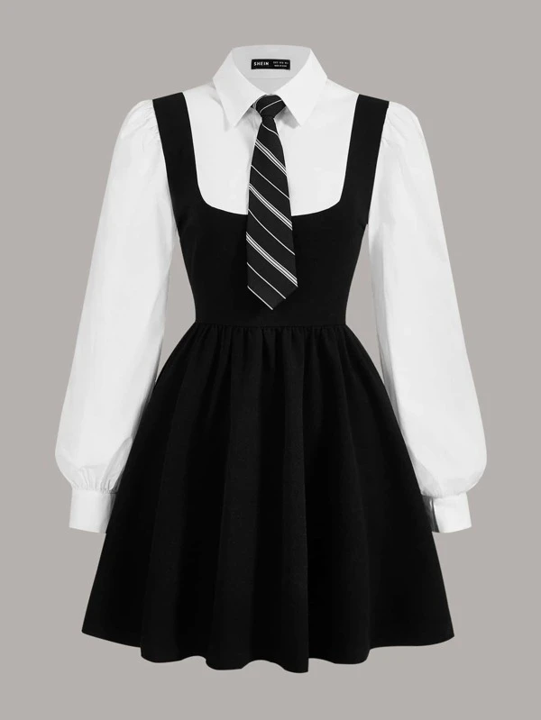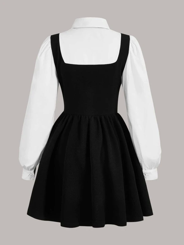 SHEIN EZwear Đầm Nút phía trước Khối Màu Thanh lịch